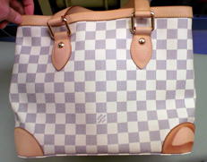 ヴィトンのバッグにコーラをこぼしてしまいヌメ革部分に濃いシミが出来ました。