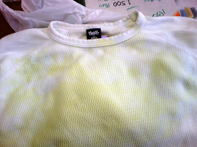 | コットン・ポリウレタントレーナーをグリーンのT シャツと一緒に洗い、色が移りました。 |