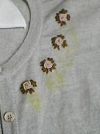 | ウールのセーターです。お客様が水洗いして刺繍より色が出ました。 |